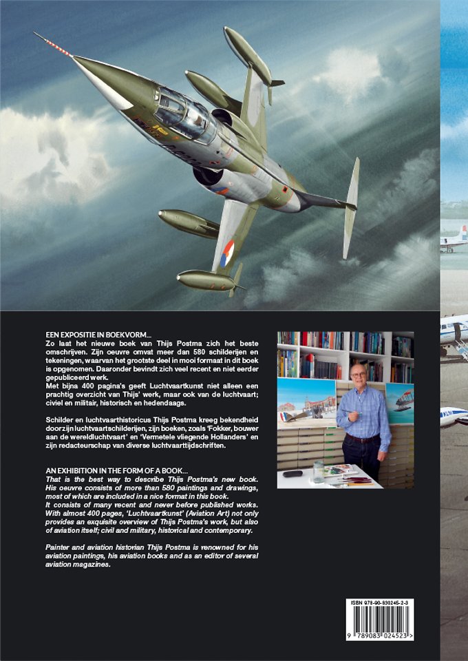 That is the best way to describe Thijs Postma’s new book! His ouevre consists of more than 580 paintings and drawings, most of which are included in a nice format in this book. It consists of many recent and never before published works. With almost 400 pages, ‘Luchtvaartkunst’ (Aviation Art) not only provides an exquisite overview of Thijs Postma’s work, but also of aviation itself; civil and military, historical and contemporary.