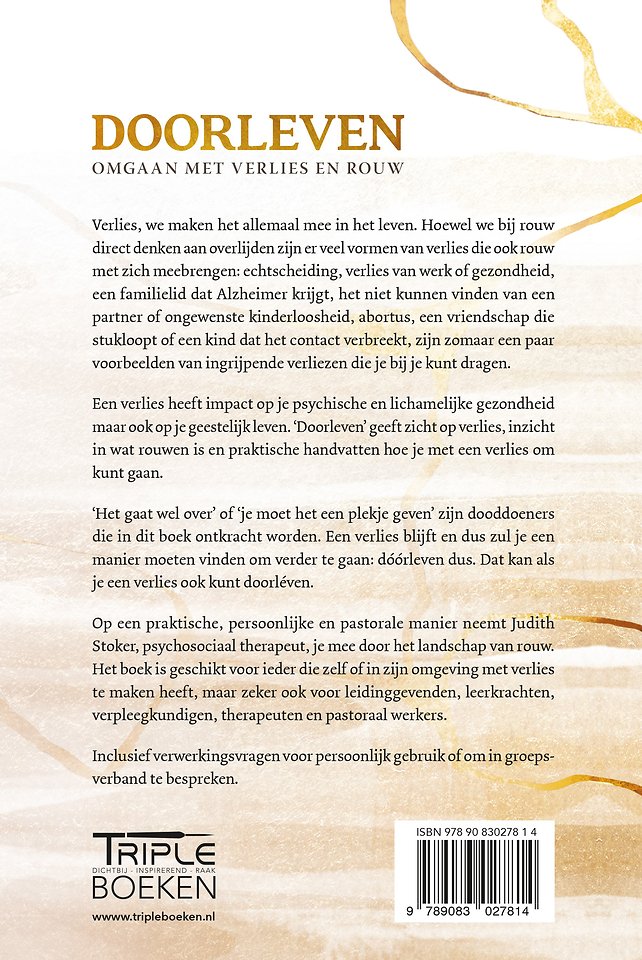 ‘Het gaat wel over’ of ‘je moet het een plekje geven’ zijn dooddoeners die in dit boek ontkracht worden. Een verlies blijft en dus zul je een manier moeten vinden om verder te gaan: dóórleven dus. Dat kan als je een verlies ook kunt doorléven.
