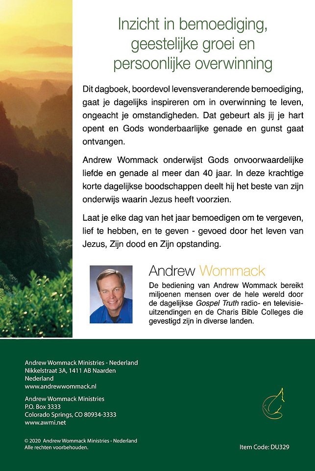 Dit dagboek boordevol levens veranderende bemoediging, zal je dagelijks inspireren om in overwinning te leven, ongeacht je omstandigheden. Dat gebeurt als jij je hart opent en Gods wonderbaarlijke genade en gunst gaat ontvangen.