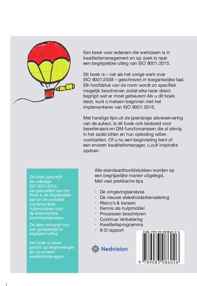 Een boek voor iedereen die werkzaam is in kwaliteitsmanagement en op zoek is naar een begrijpelijke uitleg van ISO 9001:2015.