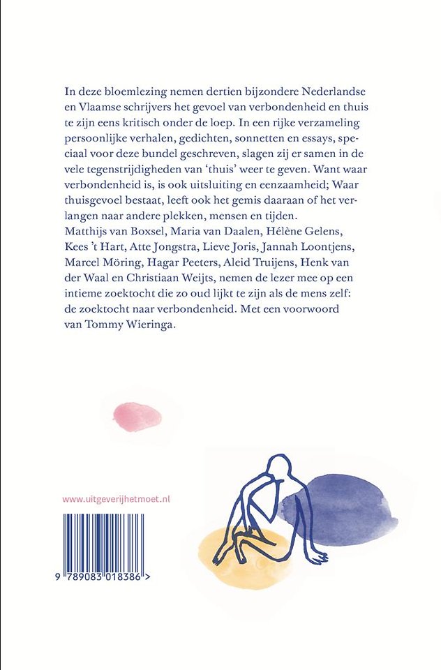In deze bloemlezing nemen dertien bijzondere Nederlandse en Vlaamse schrijvers het gevoel van verbondenheid en thuis te zijn eens kritisch onder de loep. In een rijke verzameling persoonlijke verhalen, gedichten, sonnetten en essays, speciaal voor deze bundel geschreven, slagen zij er samen in de vele tegenstrijdigheden van 'thuis' weer te geven. Want waar verbondenheid is, is ook uitsluiting en eenzaamheid; Waar thuisgevoel bestaat, leeft ook het gemis daaraan of het verlangen naar andere plekken, mensen en tijden.