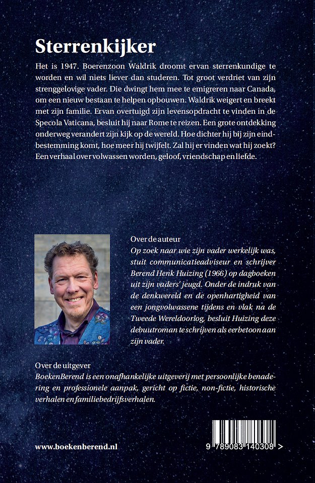Op zoek naar wie zijn vader werkelijk was, stuit communicatieadviseur en schrijver Berend Henk Huizing (1966) op onbekende dagboeken uit zijn vaders’ jeugd. Onder de indruk van de denkwereld en de openhartigheid van een jongvolwassene tijdens en vlak na de Tweede Wereldoorlog, besluit Huizing deze debuutroman te schrijven als eerbetoon aan zijn vader.