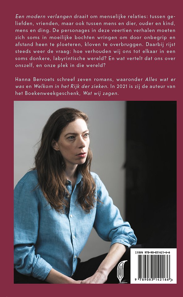 Een modern verlangen draait om menselijke relaties: tussen geliefden, vrienden, maar ook tussen mens en dier, ouder en kind, mens en ding. De personages in deze veertien verhalen moeten zich soms in moeilijke bochten wringen om door onbegrip en afstand heen te ploeteren, kloven te overbruggen. Daarbij rijst steeds weer de vraag: hoe verhouden wij ons tot elkaar in een soms donkere, labyrintische wereld? En wat vertelt dat ons over onszelf, en onze plek in die wereld?