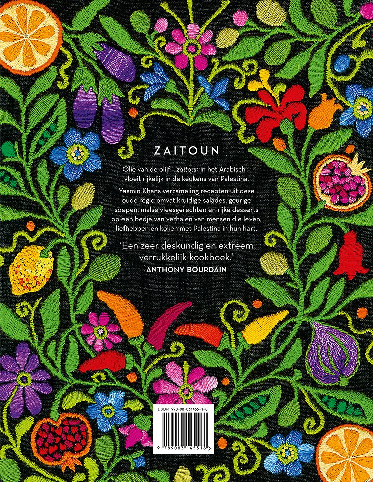 Olie van de olijf - zaitoun in het Arabisch - vloeit rijkelijk in de keukens van Palestina. Yasmin Khans verzameling recepten uit deze oude regio omvat kruidige salades, geurige soepen, malse vleesgerechten en rijke desserts op een bedje van verhalen van mensen die leven, liefhebben en koken met Palestina in hun hart.
