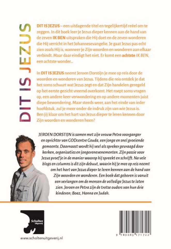 In DIT IS JEZUS neemt Jeroen Dorstijn je mee op reis door de woorden en wonderen van Jezus. Tijdens die reis ontdek je dat het soms schuurt wat Jezus zegt en dat Zijn handelen geregeld op het eerste gezicht vreemd overkomt. Het roept soms vragen op, een andere keer verwondering en op andere momenten juist diepe bewondering. Maar steeds weer, aan het einde van ieder hoofdstuk, zul je meer onder de indruk zijn van wie Jezus is. Ben jij klaar om het hart van Jezus dieper te leren kennen door Zijn woorden en wonderen heen?