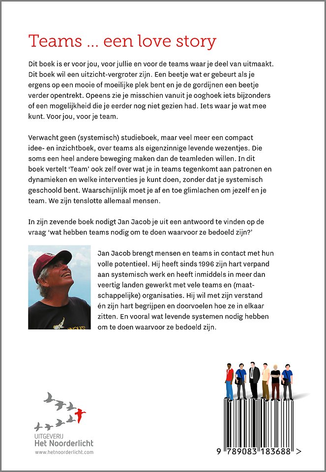 In zijn zevende boek nodigt Jan Jacob je uit om met je verstand én je hart te begrijpen en te doorvoelen hoe levende systemen in elkaar zitten. En een antwoord te vinden op de vraag ‘wat hebben teams nodig om te doen waarvoor ze bedoeld zijn?’.