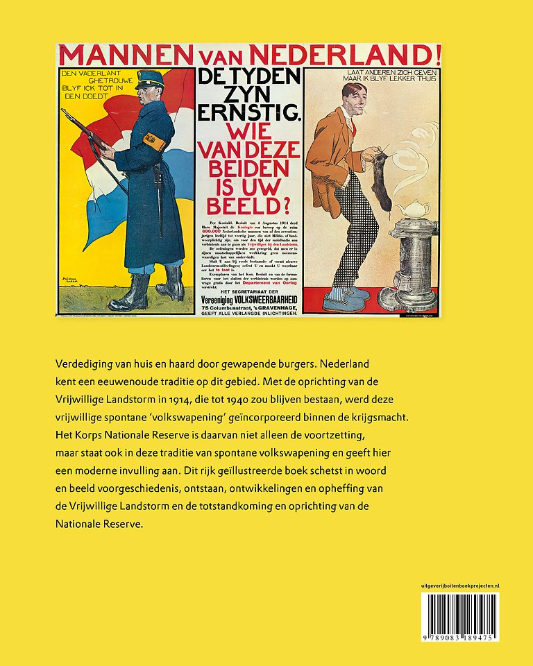 Verdediging van huis en haard door gewapende burgers. Nederland kent een eeuwenoude traditie op dit gebied. Met de oprichting van de Vrijwillige Landstorm in 1914, die tot 1940 zou blijven bestaan, werd deze vrijwillige spontane ‘volkswapening’ geïncorporeerd binnen de krijgsmacht. Het Korps Nationale Reserve is daarvan niet alleen de voortzetting, maar staat ook in deze traditie van spontane volkswapening en geeft hier een moderne invulling aan. Dit rijk geïllustreerde boek schetst in woord en beeld voorgeschiedenis, ontstaan, ontwikkelingen en opheffing van de Vrijwillige Landstorm en de totstandkoming en oprichting van de Nationale Reserve.