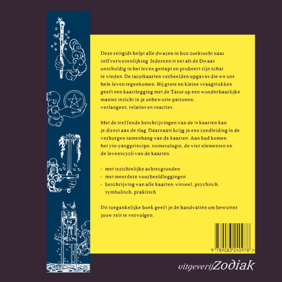 Deze reisgids helpt alle dwazen in hun zoektocht naar zelfverwezenlijking. Iedereen is net als de Dwaas onschuldig in het leven gestapt en probeert zijn schat te vinden. De tarotkaarten verbeelden opgaves die we ons hele leven tegenkomen. Bij grote en kleine vraagstukken geeft een kaartlegging met de Tarot op een wonderbaarlijke manier inzicht in je onbewuste patronen, verlangens, relaties en reacties.
