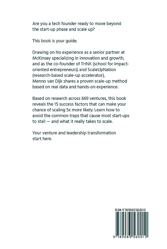 Drawing on his experience as a senior partner at McKinsey specializing in innovation and growth, and as the co-founder of THNK (school for impact- oriented entrepreneurs) and ScaleUpNation (research-based scale-up accelerator), Menno van Dijk shares a proven scale-up method based on real data and hands-on experience.