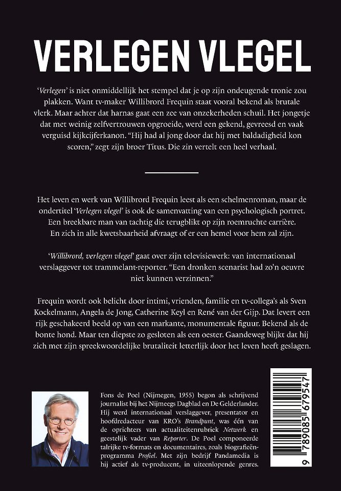 Het leven en werk van Willibrord Frequin leest als een schelmenroman, maar de ondertitel 'Verlegen vlegel' is ook de samenvatting van een psychologisch portret. Een breekbare man van tachtig die terugblikt op zijn roemruchte carrière. En zich in alle kwetsbaarheid afvraagt of er een hemel voor hem zal zijn.