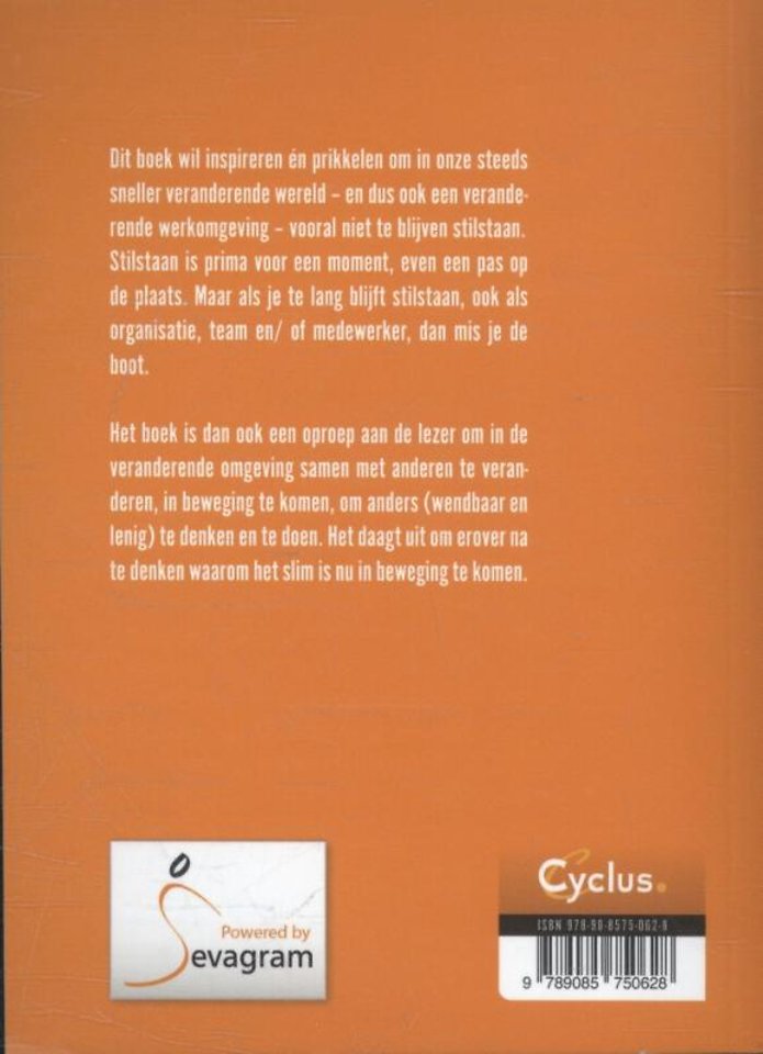 Dit boek wil inspireren én prikkelen om in onze steeds sneller veranderende wereld – en dus ook een veranderende werkomgeving – vooral niet te blijven stilstaan. Stilstaan is prima voor een moment, even een pas op de plaats. Maar als je te lang blijft stilstaan, ook als organisatie, team en/ of medewerker, dan mis je de boot.