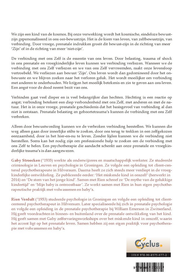 De verbinding met ons Zelf is de essentie van ons leven. Door belasting, trauma of shock in ons prenatale en vroegkinderlijke leven kunnen we verbinding verliezen. Wanneer we de verbinding met ons Zelf verliezen en we van ons Zelf vervreemden, raakt onze levensloop vertroebeld. We verliezen aan bewust 'Zijn'. Ons leven wordt dan gedomineerd door het onbewuste en we blijven zoeken naar het verloren geluk. Het wordt moeilijker om verbinding met anderen te onderhouden. We krijgen het moeilijk betekenis en zin te geven aan ons leven. Een angst voor de dood neemt bezit van ons.