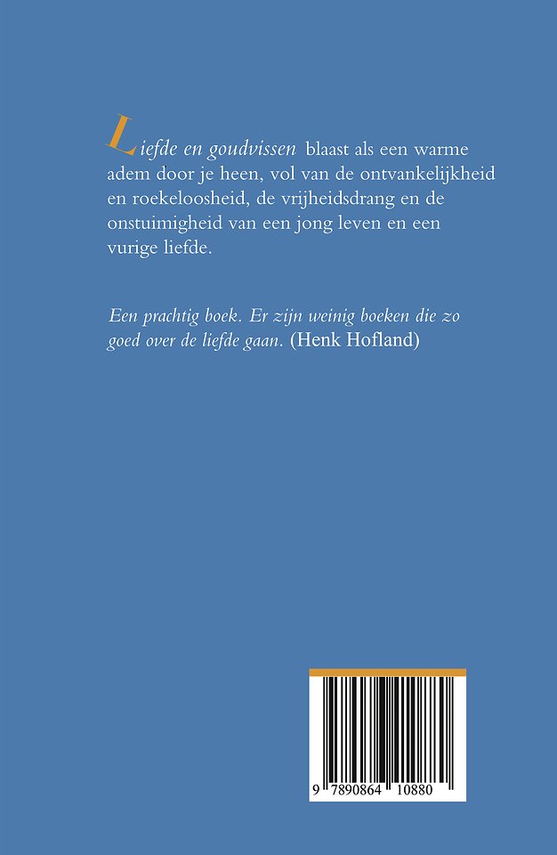 'Liefde en goudvissen' blaast als een warme adem door je heen, vol van de ontvankelijkheid en roekeloosheid, de vrijheidsdrang en de onstuimigheid van een jong leven en een vurige liefde. Verzorgde heruitgave met gloss omslag en binnencover, vederlicht geretoucheerd taalgebruik naar hedendaags Nederlands en voorwoord van Pauline van de Ven.