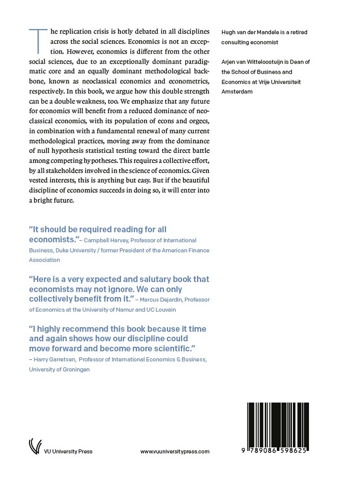 The replication crisis is hotly debated in all disciplines across the social sciences. Economics is not an exception. However, economics is different from the other social sciences, due to an exceptionally dominant paradigmatic core and an equally dominant methodological backbone, known as neoclassical economics and econometrics, respectively. In this book, we argue how this double strength can be a double weakness, too. We emphasize that any future for economics will benefit from a reduced dominance of neoclassical economics, with its population of econs and orgecs, in combination with a fundamental renewal of many of current methodological practices, moving away from the dominance of null hypothesis statistical testing toward the direct battle among competing hypotheses. This requires a collective effort, by all stakeholders involved in the science of economics. Given vested interests, this is anything but easy. But if the beautiful discipline of economics succeeds in doing so, it will enter into a bright future.