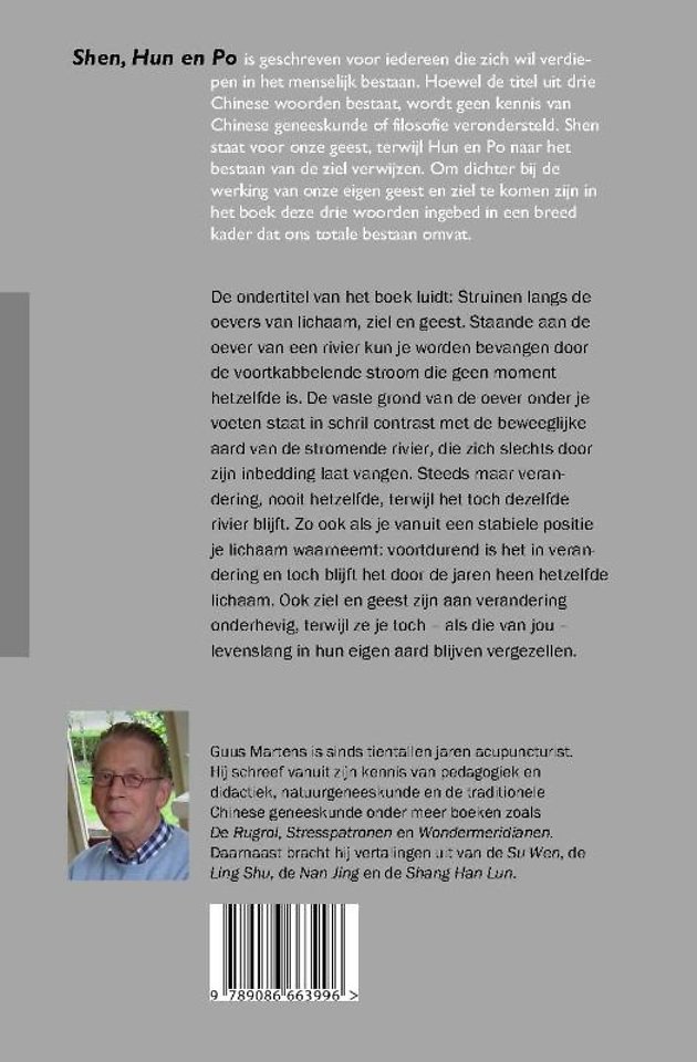 Shen, Hun en Po is geschreven voor iedereen die zich wil verdiepen in het menselijk bestaan. Hoewel de titel uit drie Chinese woorden bestaat, wordt geen kennis van Chinese geneeskunde of filosofie verondersteld. Shen staat voor onze geest, terwijl Hun en Po naar het bestaan van de ziel verwijzen. Om dichter bij de werking van onze eigen geest en ziel te komen zijn in het boek deze drie woorden ingebed in een breed kader dat ons totale bestaan omvat.