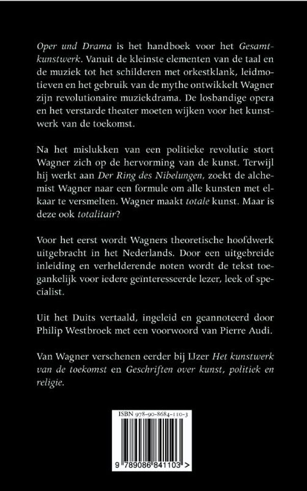 Opera en drama is het handboek voor het Gesamtkunstwerk. Vanuit de kleinste elementen van de taal en de muziek tot het schilderen met orkestklank, leidmotieven en het gebruik van de mythe ontwikkelt Wagner zijn revolutionaire muziekdrama. De losbandige opera en het verstarde theater moeten wijken voor het kunstwerk van de toekomst.