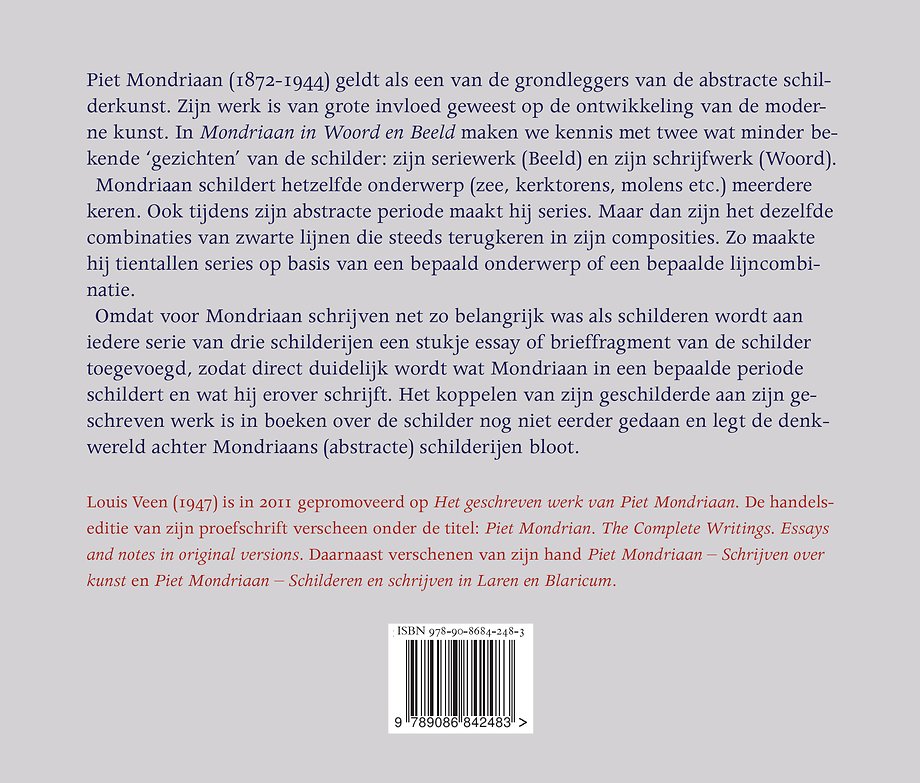 Omdat voor Mondriaan schrijven net zo belangrijk was als schilderen wordt aan iedere serie van drie schilderijen een stukje essay of brieffragment van de schilder toegevoegd, zodat direct duidelijk wordt wat Mondriaan in een bepaalde periode schildert en wat hij erover schrijft. Het koppelen van zijn geschilderde aan zijn geschreven werk is in boeken over de schilder nog niet eerder gedaan en legt de denkwereld achter Mondriaans (abstracte) schilderijen bloot.