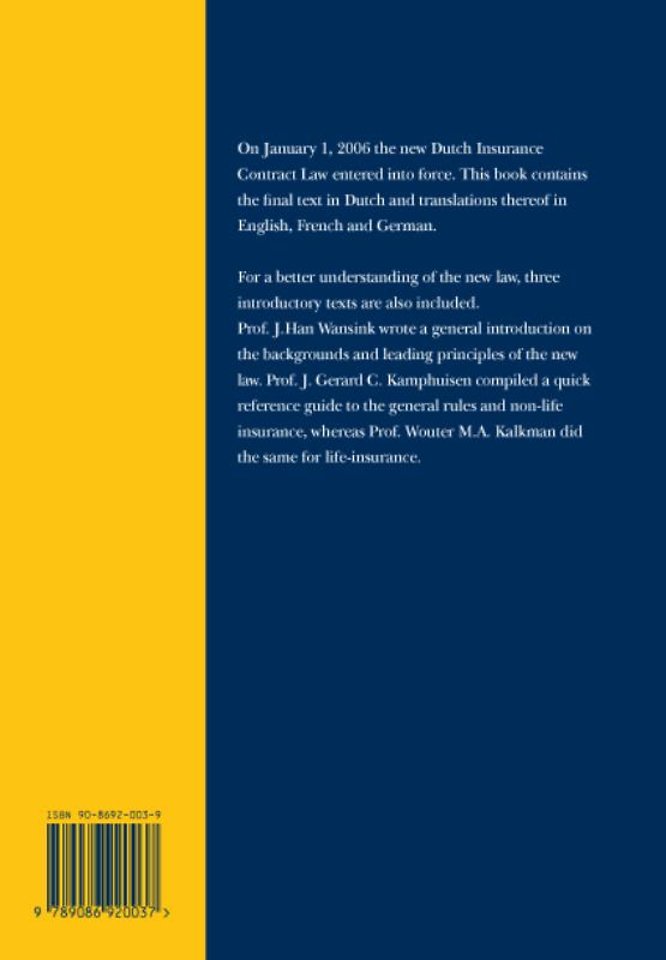 Op 1 januari 2006 is het nieuwe Verzekeringsovereenkomstenrecht van kracht gegaan. Dit boek bevat de definitieve Nederlandse tekst en de vertalingen daarvan in het Engels, Frans en Duits.