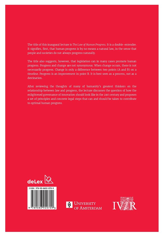 The title of this inaugural lecture is The Law of Human Progress. It is a double-entendre. It signifies, first, that human progress is by no means a natural law, in the sense that people and societies do not always progress naturally. The title also suggests, however, that legislation can in many cases promote human progress.