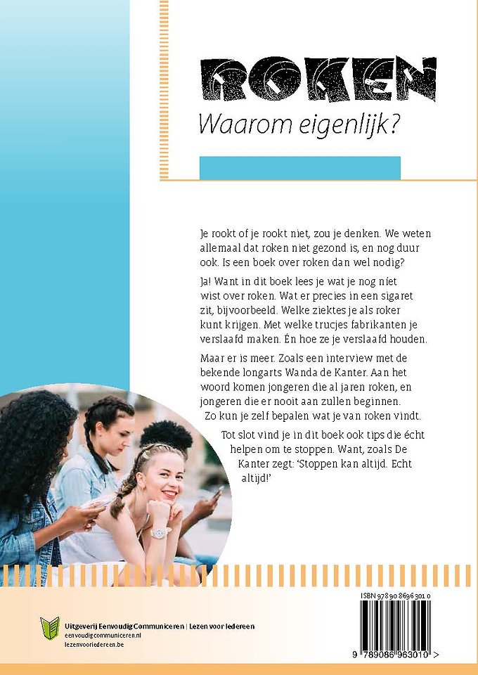 Roken, waarom eigenlijk? is een methode die door neutrale voorlichting scholieren bewust wil laten worden van de methodes van de tabakslobby en de risico's van roken. Keurmerk Gewone Taal en daardoor ook geschikt voor jongeren met een leer en/of leesachterstand.