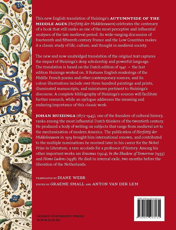 This new English translation of Huizinga’s Autumntide of the Middle Ages (Herfsttij der Middeleeuwen) celebrates the centenary of a book that still ranks as one of the most perceptive and influential analyses of the late medieval period. Its wide-ranging discussion of fourteenth and fifteenth century France and the Low Countries makes it a classic study of life, culture, and thought in medieval society.