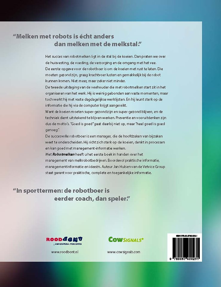 Met Robotmelken heeft u het eerste boek in handen over het management van melkrobotbedrijven. Boordevol praktische informatie, managementinformatie en ideeën.