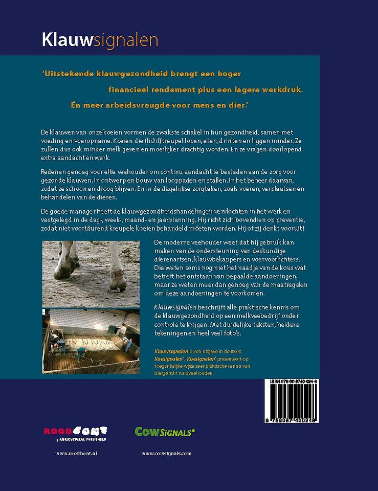 Klauwsignalen beschrijft alle praktische kennis om de klauwgezondheid op een melkveebedrijf onder controle te krijgen. Met duidelijke teksten, heldere