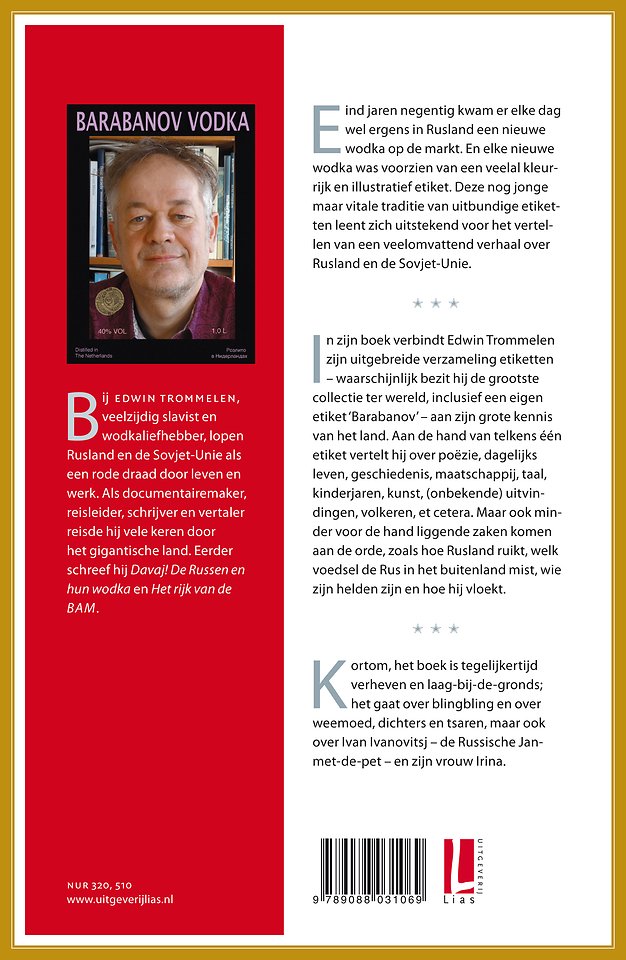 In zijn boek verbindt Edwin Trommelen zijn uitgebreide verzameling etiketten – waarschijnlijk bezit hij de grootste collectie ter wereld, inclusief een eigen etiket ‘Barabanov’ – aan zijn grote kennis van het land. Aan de hand van telkens één etiket vertelt hij over poëzie, dagelijks leven, geschiedenis, maatschappij, taal, kinderjaren, kunst, (onbekende) uitvindingen, volkeren, et cetera. Maar ook minder voor de hand liggende zaken komen aan de orde, zoals hoe Rusland ruikt, welk eten de Rus in het buitenland mist, wie zijn helden zijn en hoe hij vloekt.