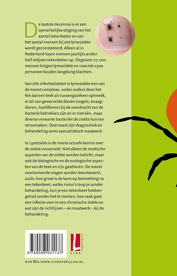 In Lymeziekte is de meest actuele kennis over de ziekte verzameld. Niet alleen de medische aspecten van de ziekte worden belicht, maar ook de biologische en de ecologische aspecten van de teek en zijn gastheren. De meest voorkomende vragen worden beantwoord, zoals: hoe groot is de kans op besmetting na een tekenbeet, welke risico’s loop je zonder behandeling, kun je een tekenbeet hebben gehad zonder het te merken, hoe vaak gaat een infectie over in een chronische ziekte en wat zijn de richtlijnen – en maatwerk – bij de behandeling.