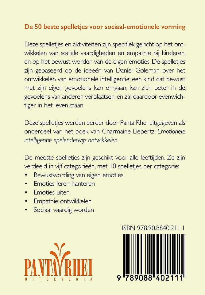 Deze spelletjes werden eerder door Panta Rhei uitgegeven als onderdeel van het boek van Charmaine Liebertz: 'Emotionele intelligentie spelenderwijs ontwikkelen'.