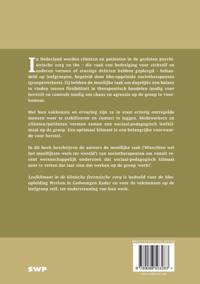 Dit boek beschrijft de moeilijke taak ('misschien wel het moeilijkste werk ter wereld') van sociotherapeuten op de leefgroep om dat sociaal-pedagogisch klimaat neer te zetten vanuit recent wetenschappelijk onderzoek dat laat zien dat werken op de groep 'werkt'.