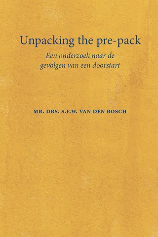 In dit boek analyseert Steffie van den Bosch het juridisch-normatieve kader van de pre-pack, waarbij zij ook nagaat welke veranderingen de WCO I hierin tracht aan te brengen. Vervolgens bespreekt de auteur enkele kritiek- en succesfactoren van de pre-pack. Aan de hand hiervan doet de auteur onderzoek naar de toepassing van de pre-pack in de praktijk, waarbij zij een (statistische) vergelijking maakt tussen de gevolgen van een pre-packdoorstart en een klassieke doorstart. Verder behandelt de auteur de voorwaarden voor het toepassen van de pre-pack, de rol van de beoogd curator, misbruik van faillissementsrecht en de overgang van de onderneming. Dit boek kan duidelijkheid bieden over de vraag of de pre-pack het überhaupt waard is om voor te strijden.