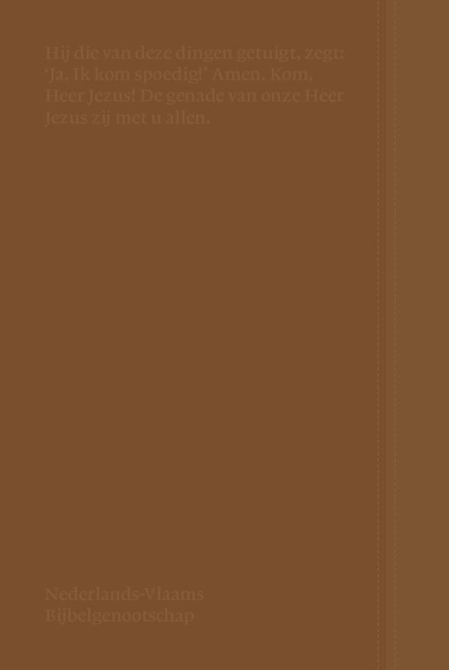 Dit is de compacte editie van de NBV21, voor als je graag een klein formaat bijbel gebruikt. Het kleine formaat, 100 x 150 mm,  maakt dat je deze bijbel gemakkelijk meeneemt, naar de kerk of naar bijbelstudie. Deze tijdloze variant van de NBV21 Compact is een bijbel met een flexibele band en een cognac kleur. Het fijne materiaal ondersteunt het warme karakter van de Compact Tijdloos. Deze editie wordt geleverd in een beschermende koker. Want de Bijbel is een boek dat je leven lang mee zou mogen gaan.