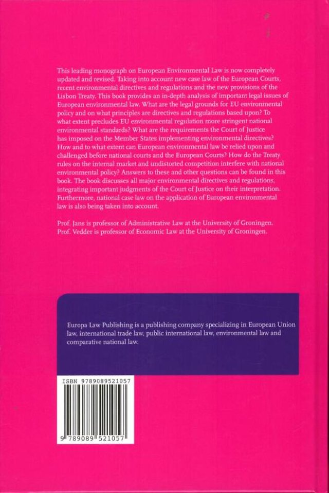 This leading monograph on European Environmental Law is now completely updated and revised. Taking into account new case law of the European Courts, recent environmental directives and regulations and the new provisions of the Lisbon Treaty. This book provides an in-depth analysis of important legal issues of European environmental law. What are the legal grounds for EU environmental policy and on what principles are directives and regulations based upon? To what extent precludes EU environmental regulation more stringent national environmental standards? What are the requirements the Court of Justice has imposed on the Member States implementing environmental directives? How and to what extent can European environmental law be relied upon and challenged before national courts and the European Courts? How do the Treaty rules on the internal market and undistorted competition interfere with national environmental policy? Answers to these and other questions can be found in this book. The book discusses all major environmental directives and regulations, integrating important judgments of the Court of Justice on their interpretation. Furthermore, national case law on the application of European environmental law is also being taken into account.