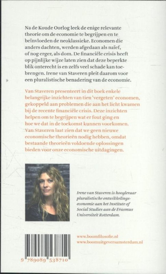 Van Staveren presenteert in dit boek enkele belangrijke inzichten van tien 'vergeten' economen, gekoppeld aan problemen die aan het licht kwamen bij de recente financiële crisis. Deze inzichten helpen om te begrijpen wat er fout ging en hoe we dat in de toekomst kunnen voorkomen. Van Staveren laat zien dat we geen nieuwe economische theorieën nodig hebben, omdat bestaande theorieën voldoende oplossingen bieden voor onze economische uitdagingen.