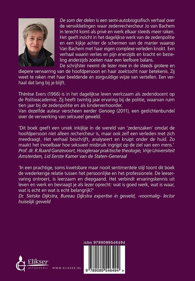 'Dit boek geeft een uniek inkijkje in de wereld van 'zedenzaken' omdat de hoofdpersoon niet alleen rechercheur is, maar ook zelf een verleden met zich meedraagt. Het verhaal beschrijft, analyseert en kruipt onder de huid. Zo maakt het invoelbaar hoe seksueel misbruik ingrijpt op de ziel van een mens.'