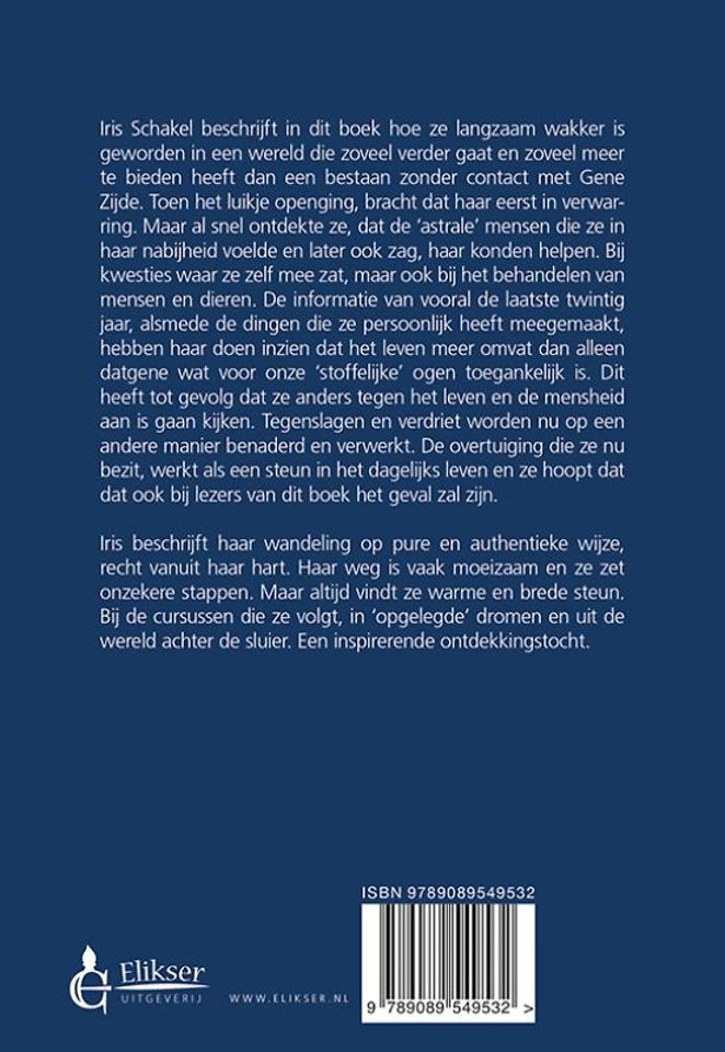 Iris Schakel beschrijft in dit boek hoe ze langzaam wakker is geworden in een wereld die zoveel verder gaat en zoveel meer te bieden heeft dan een bestaan zonder contact met Gene Zijde. Toen het luikje openging, bracht dat haar eerst in verwarring. Maar al snel ontdekte ze, dat de 'astrale' mensen die ze in haar nabijheid voelde en later ook zag, haar konden helpen. Bij kwesties waar ze zelf mee zat, maar ook bij het behandelen van mensen en dieren. De informatie van vooral de laatste twintig jaar, alsmede de dingen die ze persoonlijk heeft meegemaakt, hebben haar doen inzien dat het leven meer omvat dan alleen datgene wat voor onze 'stoffelijke' ogen toegankelijk is. Dit heeft tot gevolg dat ze anders tegen het leven en de mensheid aan is gaan kijken. Tegenslagen en verdriet worden nu op een andere manier benaderd en verwerkt. De overtuiging die ze nu bezit, werkt als een steun in het dagelijks leven en ze hoopt dat dat ook bij lezers van dit boek het geval zal zijn.