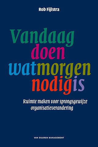 Door zelf te doen wat morgen nodig is en u te concentreren op sprongsgewijze, kleinschalige doorbraakexperimenten, wordt u positief besmettelijk voor uw omgeving en ontstaat er een inktvlekwerking. De beloning: het gevoel dat u zinvol werk doet waarbij u trouw blijft aan uw eigen keuzes, en een organisatie waarin u samen met anderen zonder onzinactiviteiten het leven van alle betrokkenen gelukkiger maakt.