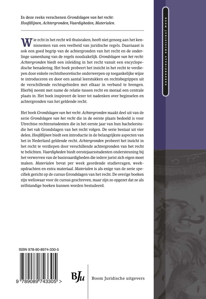 Wie echt in het recht wil thuisraken, heeft niet genoeg aan het kennisnemen van een veelheid van juridische regels. Daarnaast is ook een goed begrip van de achtergronden van het recht en de onderlinge samenhang van de regels noodzakelijk. Grondslagen van het recht: Achtergronden biedt een inleiding in het recht vanuit een encyclopedische benadering.