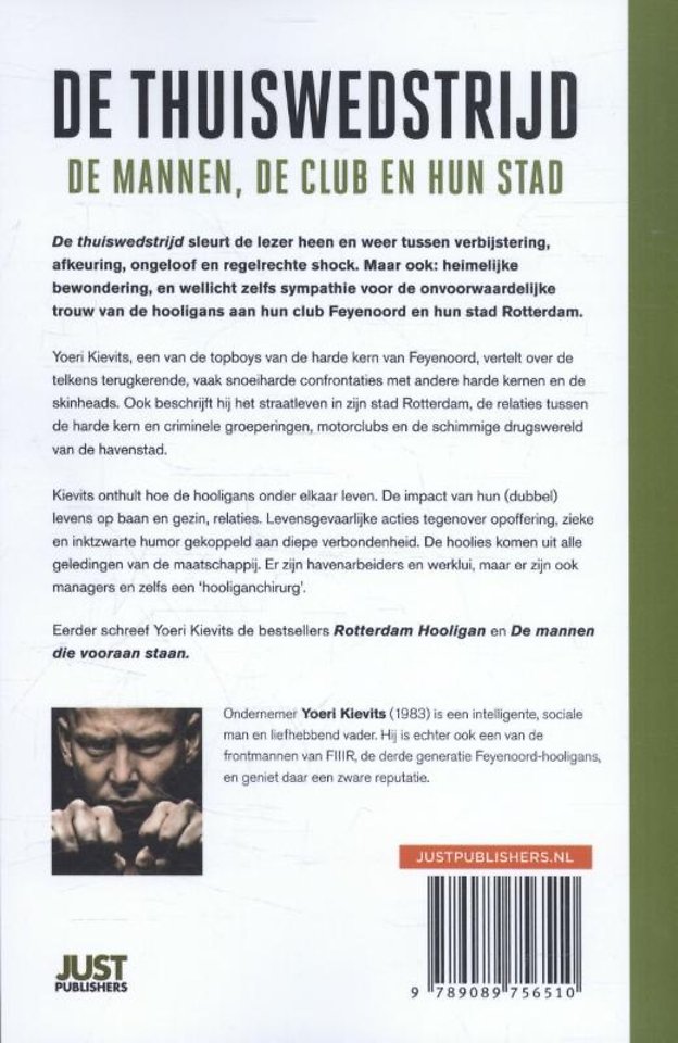 Na de bestsellers Rotterdam Hooligan en De mannen die vooraan staan is er nu De thuiswedstrijd. Een ' must have' voor iedereen die interesse heeft in het fenomeen 'hooligan'. en die tegen een stootje kan ... Yoeri Kievits: 'De thuiswedstrijd is mijn beste boek!'