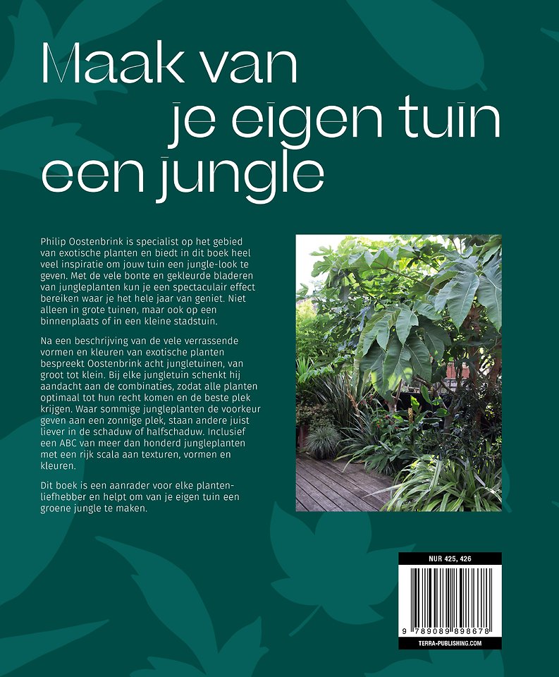 Philip Oostenbrink is specialist op het gebied van exotische planten en biedt in dit boek heel veel inspiratie om jouw tuin een jungle-look te geven. Met de vele bonte en gekleurde bladeren van jungleplanten kun je een spectaculair effect bereiken waar je het hele jaar van geniet. Niet alleen in grote tuinen, maar ook op een binnenplaats of in een kleine stadstuin.