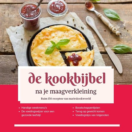 Het kookboek "kookbijbel na je maagverkleining" is het resultaat van jarenlange ervaring en persoonlijk onderzoek. In dit boek vind je tal van lekkere, gezonde alledaagse recepten die perfect aansluiten op de nieuwe voedingsbehoefte van iemand met een maagverkleining.