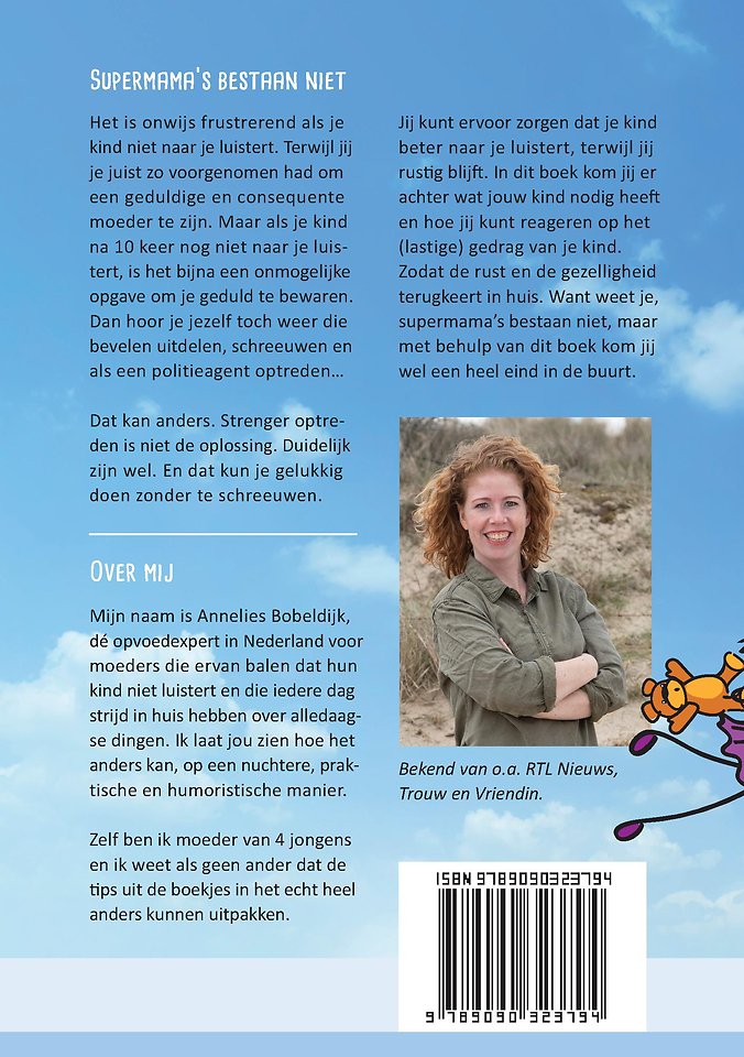 Jij kunt ervoor zorgen dat je kind beter naar je luistert, terwijl jij rustig blijft. In dit boek kom jij er achter wat jouw kind nodig heeft en hoe jij kunt reageren op het (lastige) gedrag van je kind. Zodat de rust en de gezelligheid terugkeert in huis. Want weet je, supermama’s bestaan niet, maar met behulp van dit boek kom jij wel een heel eind in de buurt.