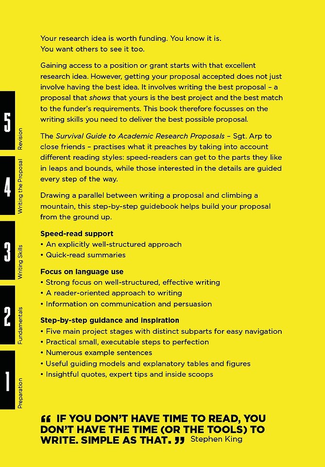 It is clear that your proposal should be well written. This guidebook is one of the first that details the practical work that is involved in achieving just that. It focuses on well-structured, effective writing by offering numerous example sentences and practical, executable steps to perfection.