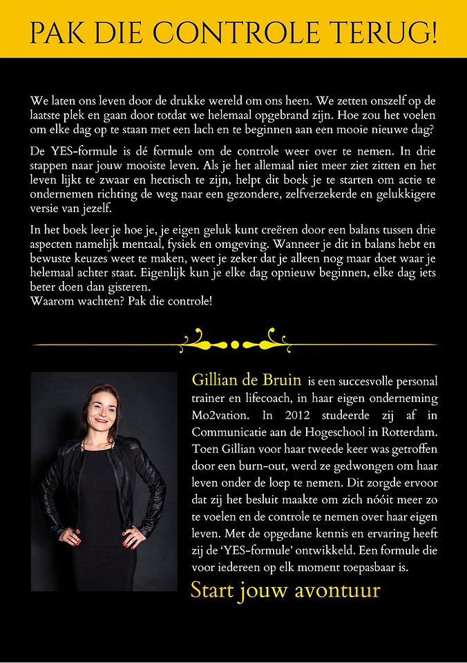 'De YES-formule. In drie stappen naar jouw mooiste leven'. Dit boek biedt je de handvatten om de controle over je leven terug te krijgen. Bewuste keuzes te maken, gewoontes te veranderen en gelukkig te zijn met het leven dat je leidt.