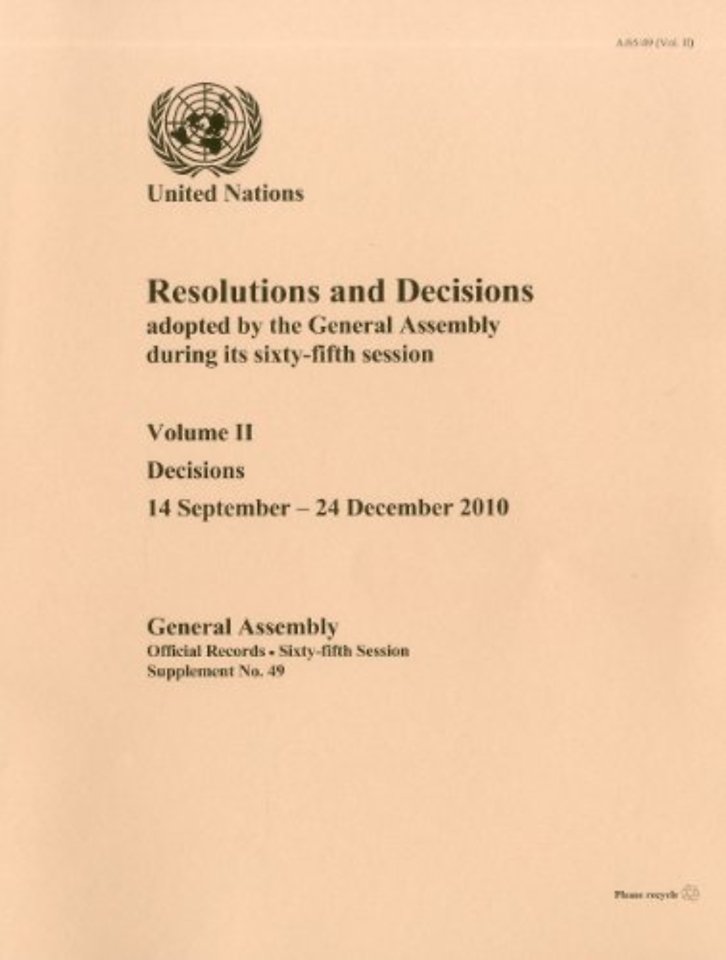 Resolutions and Decisions Adopted by the General – Sixty–fifth Session, Volume 2, Decisions (14 September to 24 December 2010)