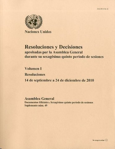 Resoluciones y decisiones aprobadas por la asamb – Sexagesimo quinto periodo de sesiones, Volume 1, resoluciones (14 de septiembre a 24 de diciembre d