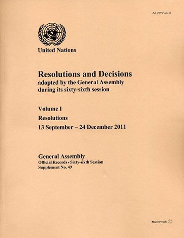 Resolutions and Decisions Adopted by the General – Sixty–sixth Session, Volume 1 Resolutions (13 September, 24 December 2011)