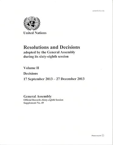 Resolutions and Decisions Adopted by the General Assembly during its Sixty–Eighth Session, Volume II
