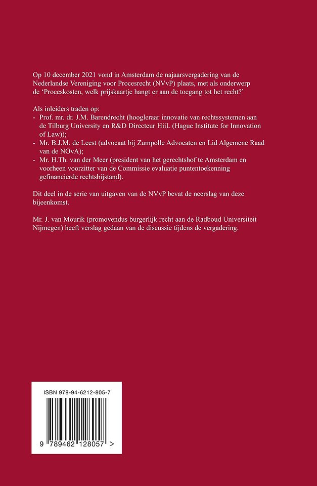 Op 10 december 2021 vond in Amsterdam de najaarsvergadering van de Nederlandse Vereniging voor Procesrecht (NVvP) plaats, met als onderwerp de ‘Proceskosten, welk prijskaartje hangt er aan de toegang tot het recht?’